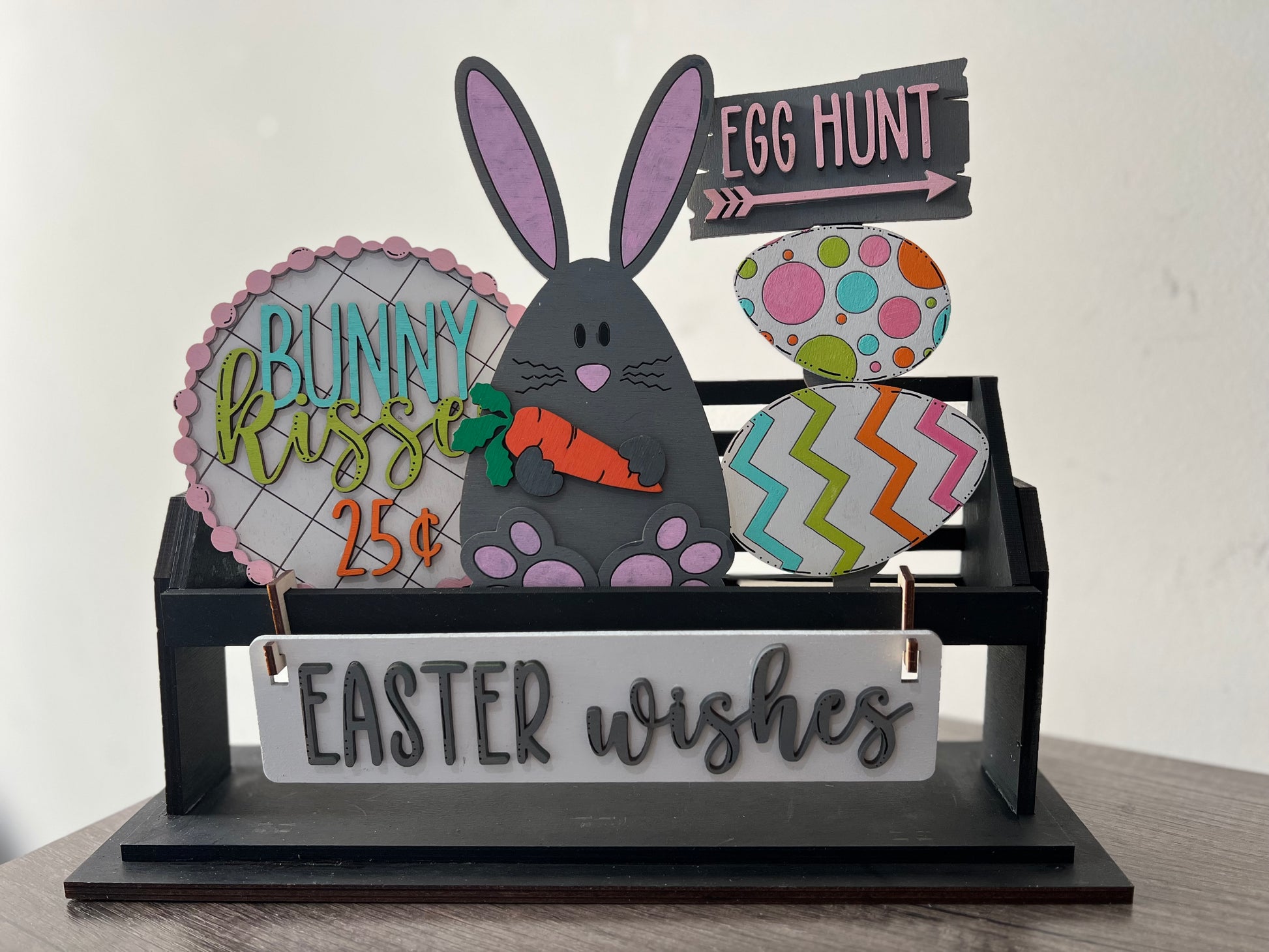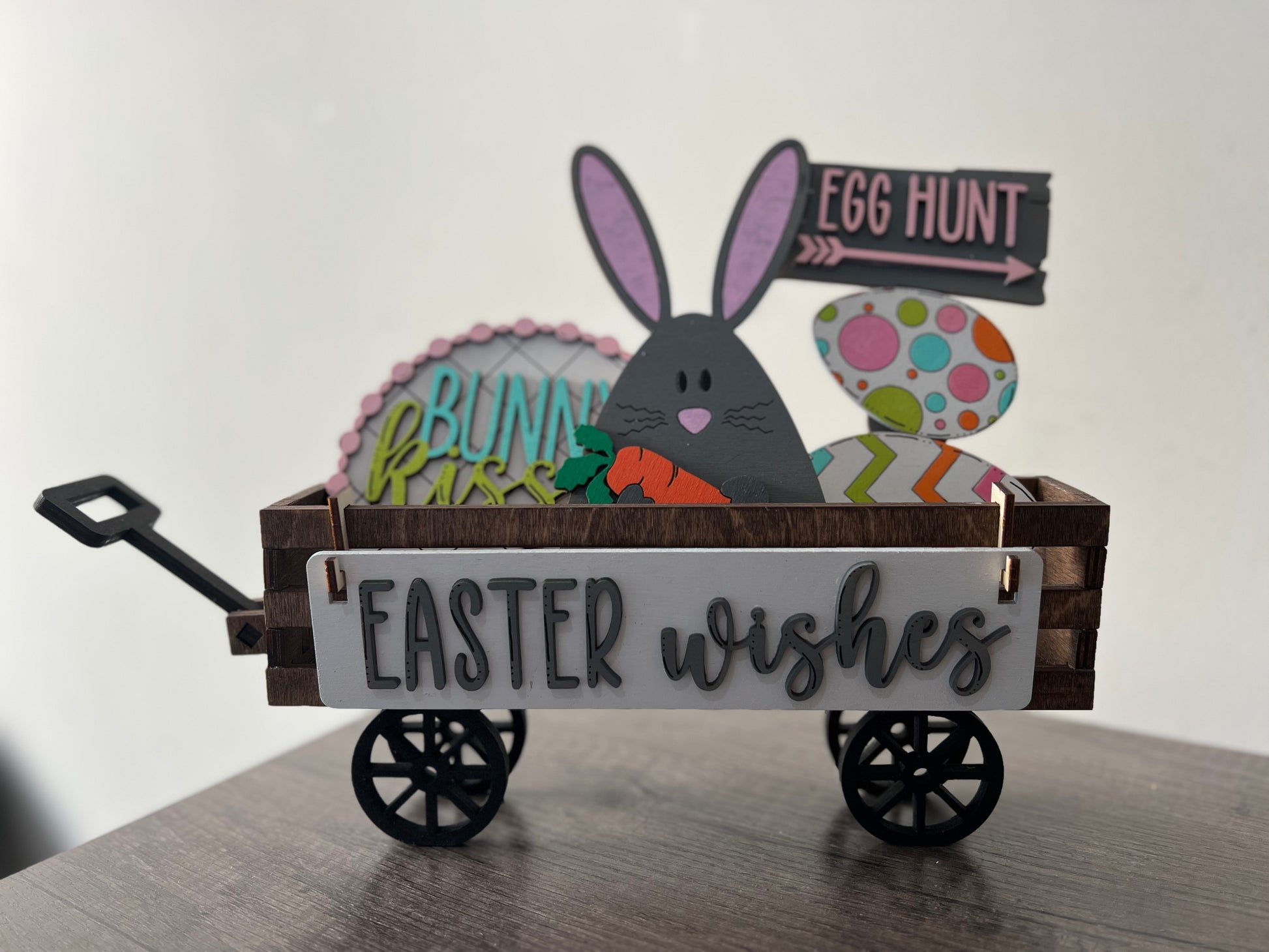 This Easter wishes insert set is perfect for Easter! It is made of wood and either painted or stained. Each set comes with hooks and front plate. Wagon and shelf sitter purchased separately. Purchase wagon and/or shelf with insert set for additional discount.