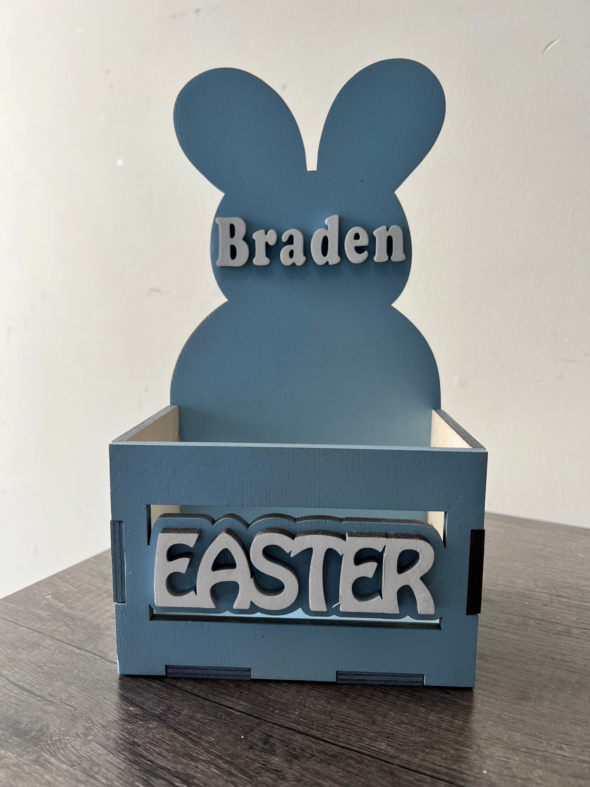These crates make the perfect addition to hold your sweets for Easter! Personalize the crate and choose a background color of either Pastel Green, Pastel Pink or Pastel Blue. All name lettering comes in white and has the option to be block lettering or cursive.